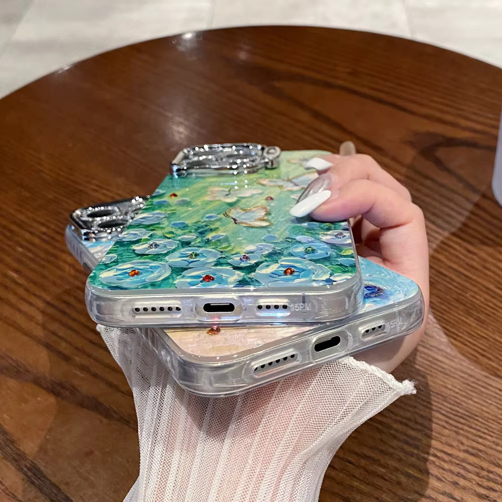 Luxury Butterfly Oil Painting with Lens Protection Holder Shockproof Bumper Cover